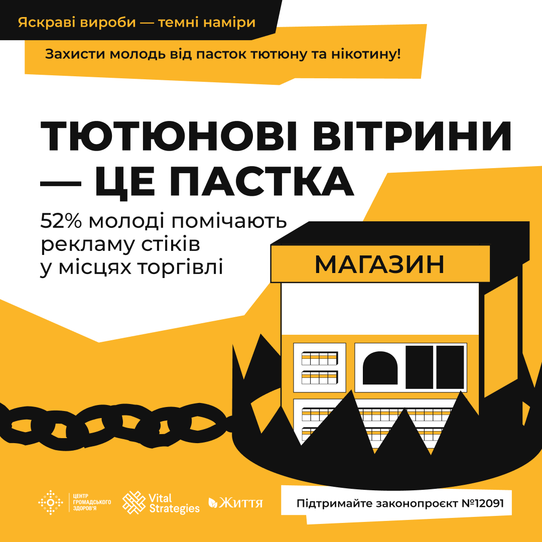 📊 Проте тютюнова індустрія використовує вітрини у місцях торгівлі для агресивного залучення нових курців серед молоді. Щороку тютюнові компанії витрачають на це до 1,6 мдрд грн*.