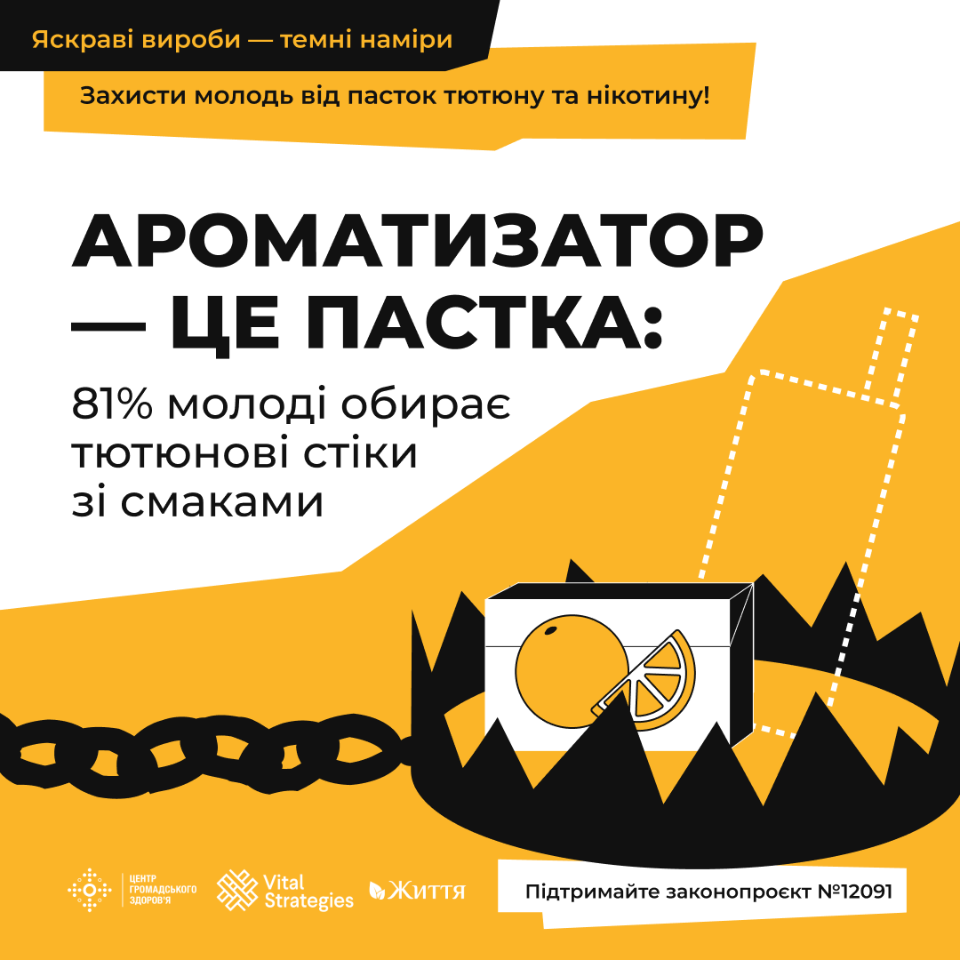 На жаль, ця тактика дієва: в Україні 81% молодих споживачів (18–29 років) пристроїв для нагрівання обирають лише ароматизовані тютюнові стіки. Натомість 65% українців підтримують повну заборону ароматизованих тютюнових виробів.